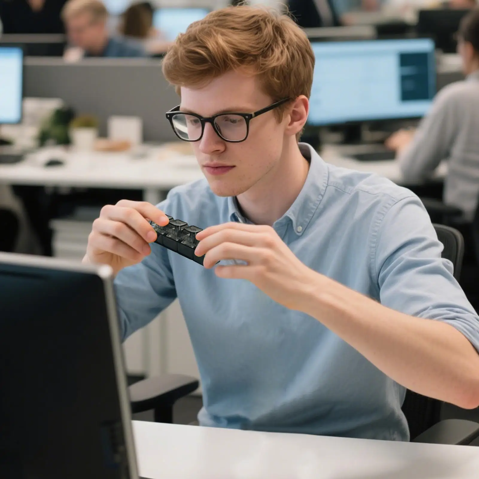 1.Office Relaxation Tool: Featuring a compact four-key design, the Keyboard Fidget delivers authentic tactile feedback, making it an ideal stress relief tool for office settings where users need calming sensory stimulation throughout the day
